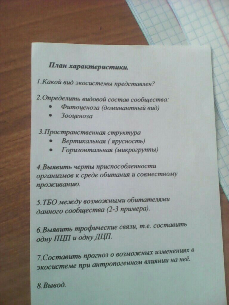 напишите сочинение по данному плану (можно взять любую экосистему)))