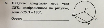 т.к угол СОD центральный, то дуга CD=углуCOD=130=>