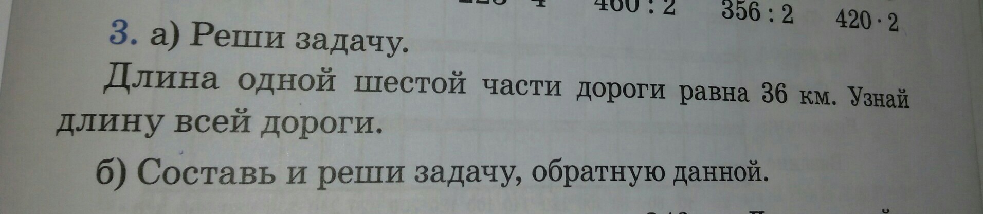 Обратная задача: длина дороги 216 км. Чему равна одна шестая часть всей дороги?