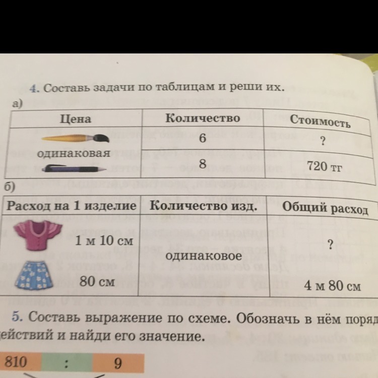 Условие первой задачи: за 8 ручек заплатили 720 тг. Сколько заплатят за 6 кисточек, если цена ручек и кисточек одинаковая?