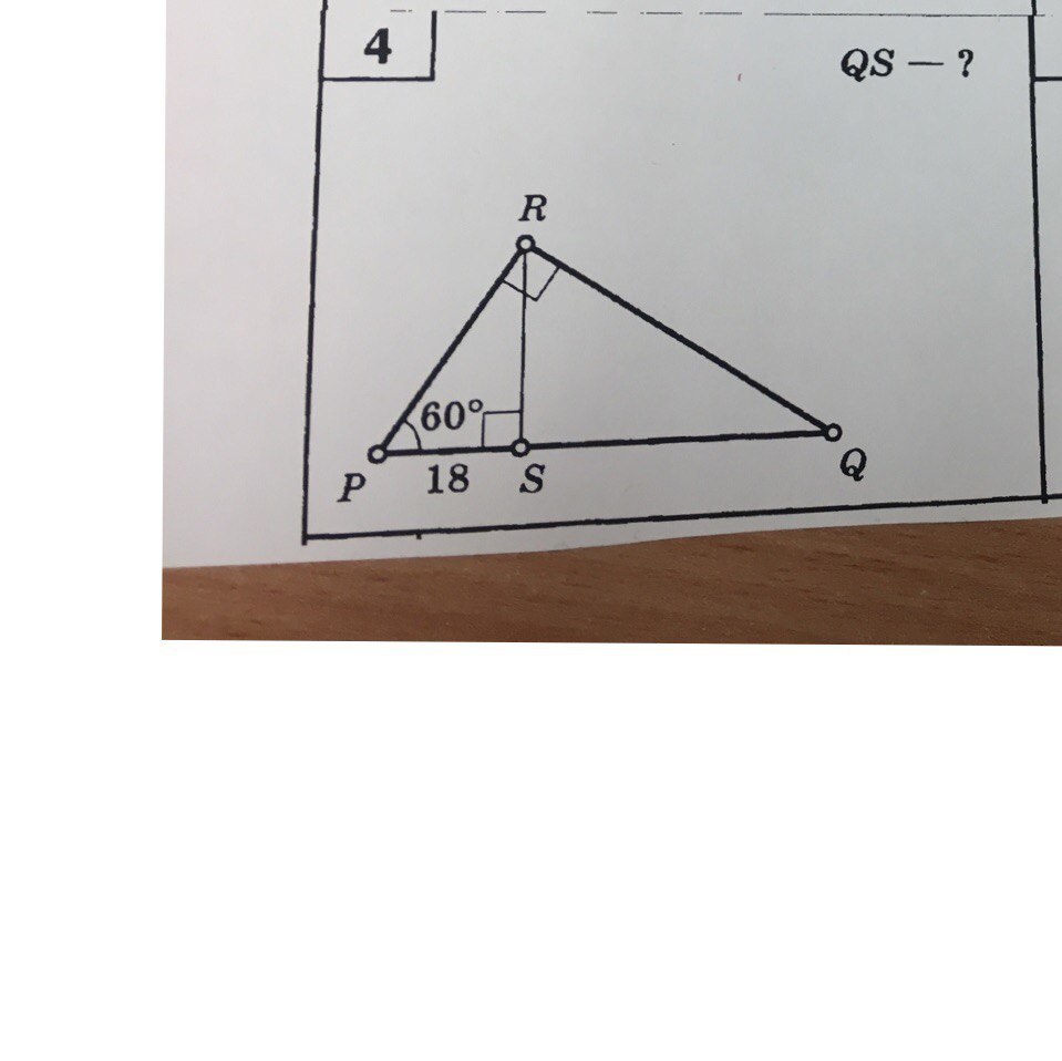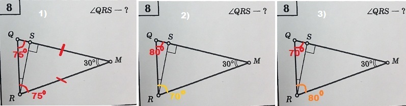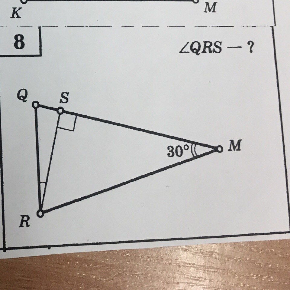 8. Это задача с неполным условием, поэтому однозначного решения не имеет. Из прямоугольного треугольника QSR можно найти угол QRS при условии, что задан угол Q: