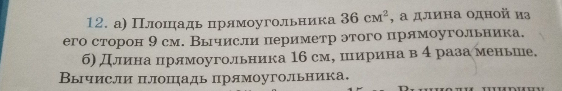 площадь прямоугольника 36см в квадрате,а длинна одной из его сторон 9см. сделайте а,б