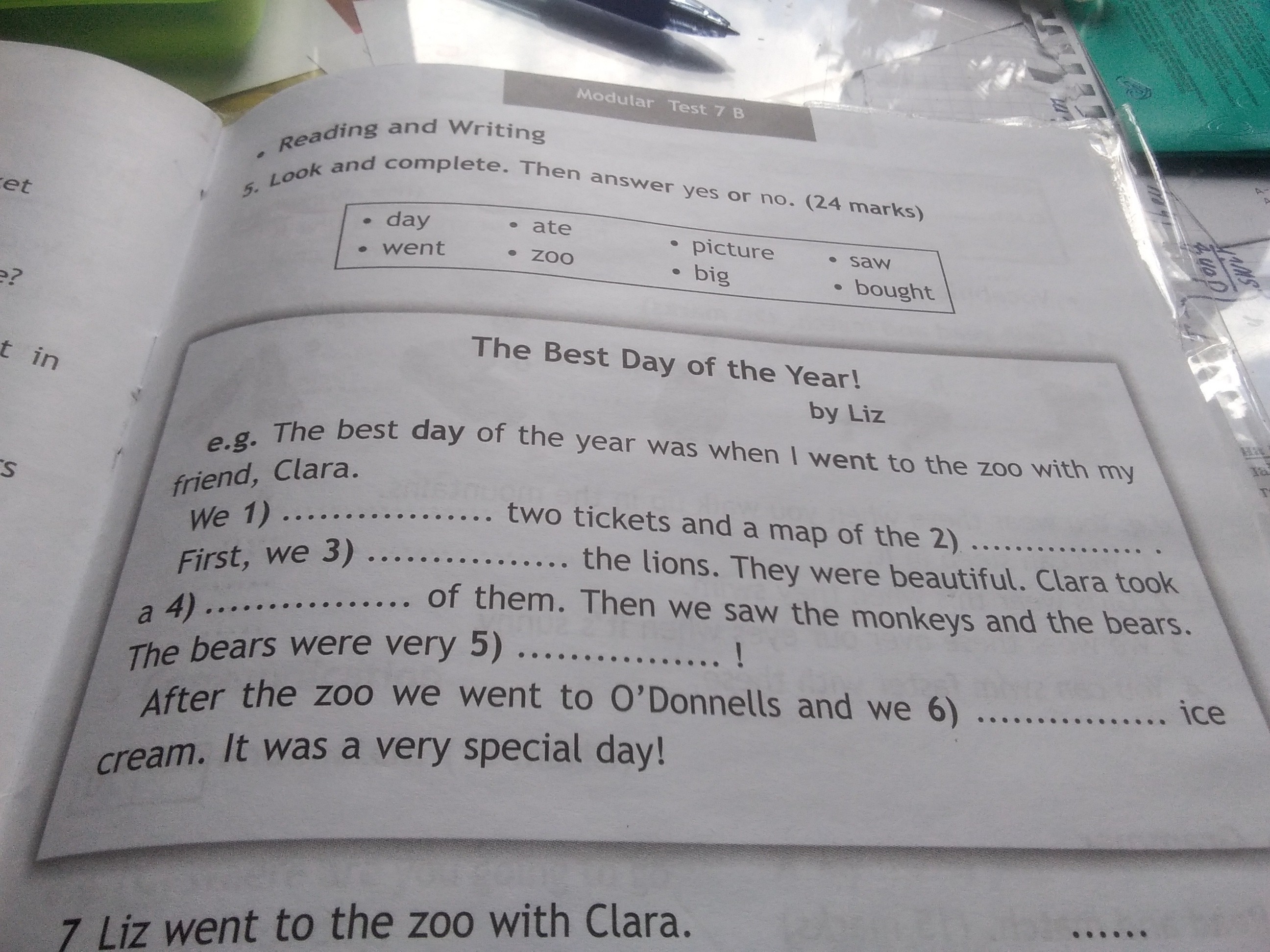 1)bought 2)zoo 3)saw 4) picture 5)big 6)ate