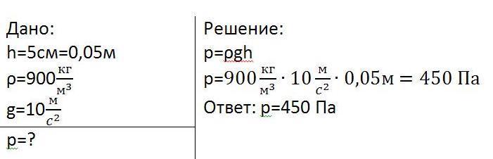 Какое давление оказывает слой подсолнечного масла на дно кастрюли если высота 5 см?