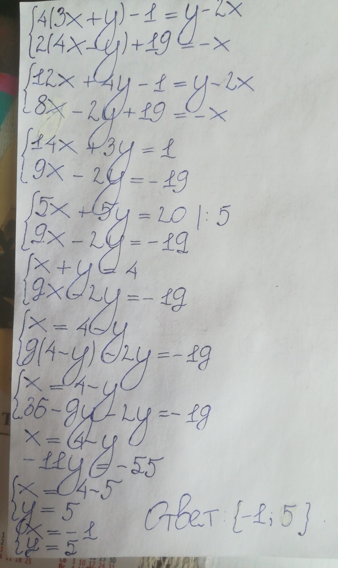 2(4(-3/14y+1/14)-y)+19=-(-3/14y+1/14)