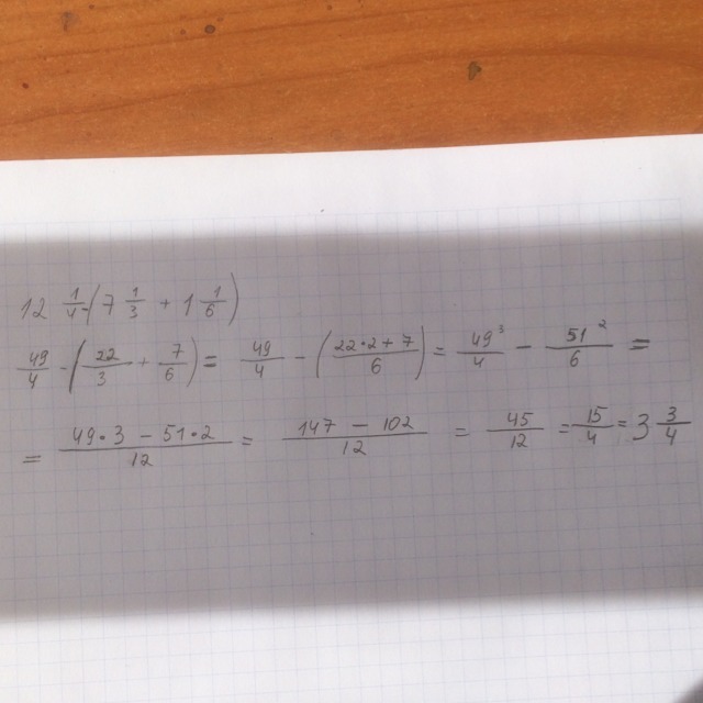 12 1/4-(7 1/3+1 1/6)=3 3/4