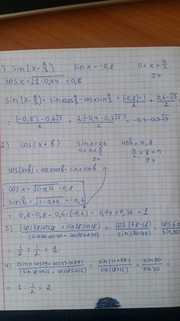 1) sin(L - Pi/3), если sinL = -0.8; 0 < L < (Pi/2)