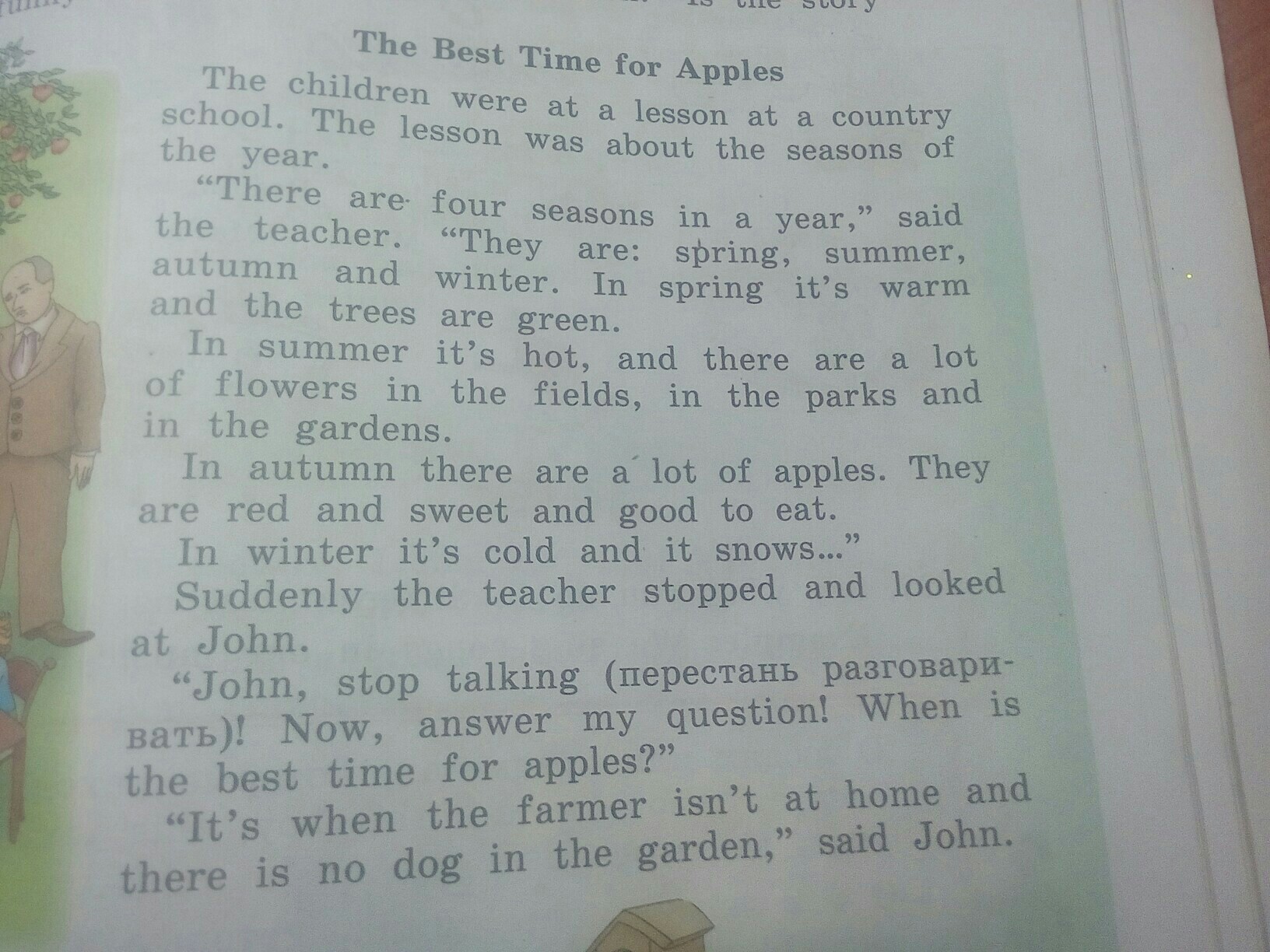 Теперь ответь на мой вопрос ! Когда лучшее время для яблок? «» Это когда фермер не дома и нет собаки в саду «, сказал Джон.