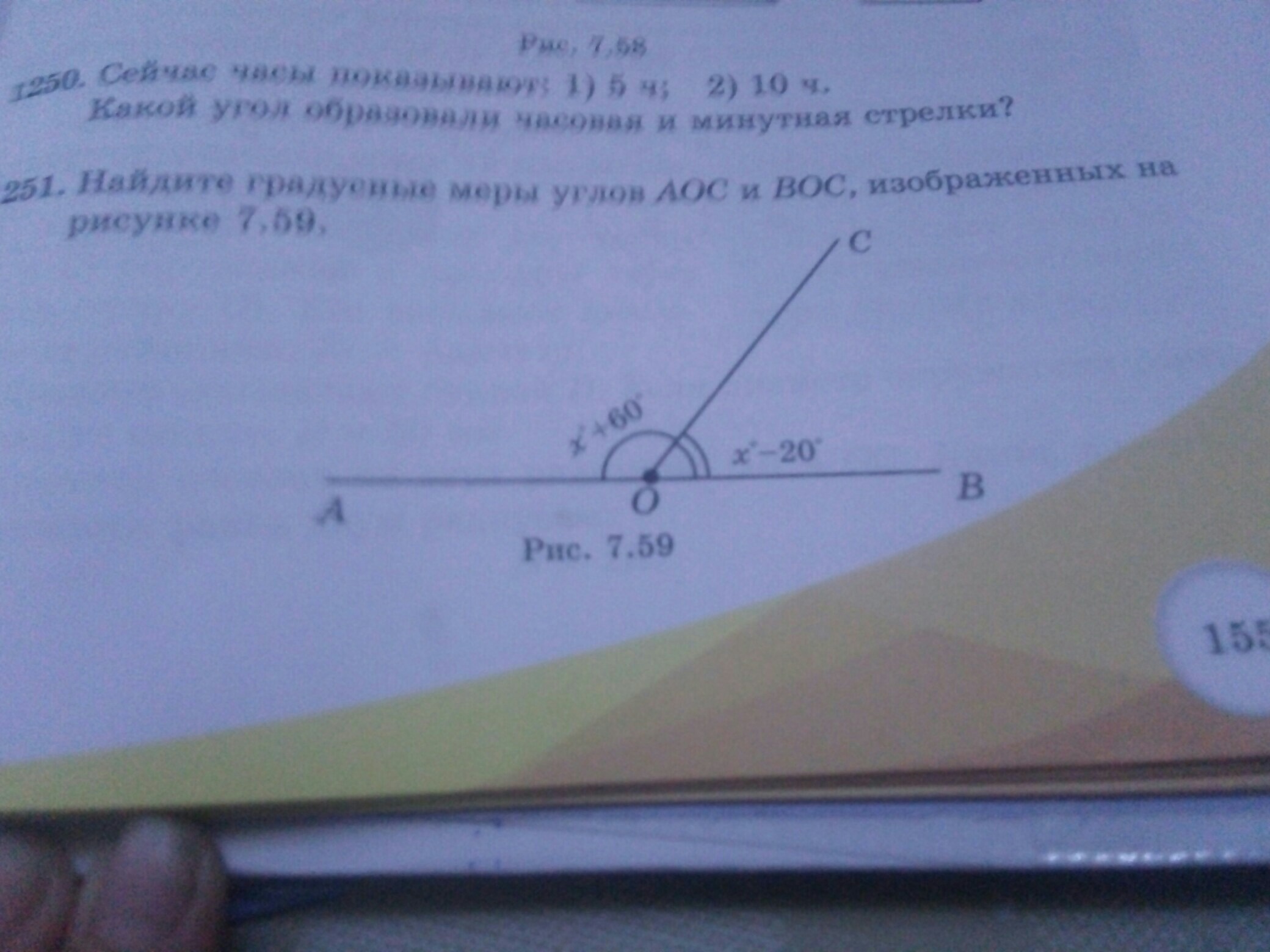 найдите градусные меры углов АОС и ВОС, изображённых на рисунке 7.59