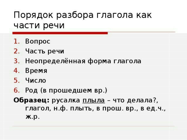 Тары-бары, Трали-вали, Три бабушки На бульваре — В салочки играли, Внуков растеряли, И вся троица ревет: — Нам от дочек попадет! Глаголы: играли, растеряли, ревет, попадёт. Играли - глагол, начальная форма - играть. Постоянные признаки: несовершенный вид, 1 спряжение. Непостоянные признаки: изъявительное наклонение, множественное число, прошедшее время. В предложении является главным членом - сказуемым. Растеряли - глагол, начальная форма - растерять. Постоянные признаки: 1 спряжение, совершенный вид. Непостоянные признаки: изъявительное наклонение, множественное число, прошедшее время. В предложении является главным членом - сказуемым. Ревет - глагол, начальная форма - реветь. Постоянные признаки: 1 спряжение, несовершенный вид. Непостоянные признаки: изъявительное наклонение, настоящее время, 3 лицо. В предложении является главным членом - сказуемым. Попадет - глагол, начальная форма - попасть. Постоянные признаки: 1 спряжение, совершенный вид. Непостоянные признаки: изъявительное наклонение, единственное число, будущее время, 3-е лицо. В предложении является главным членом - сказуемым.
