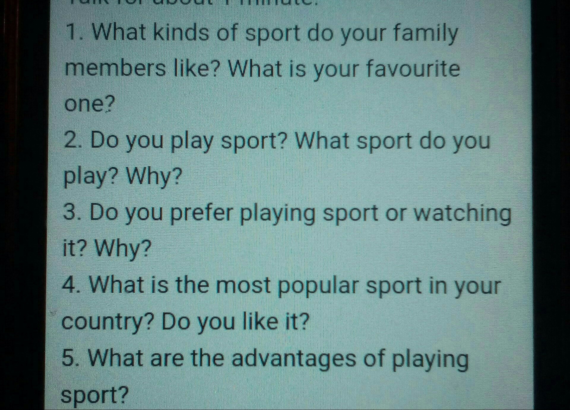 2. Yes, i usually play sport. I play bascetball because of the speed. And of course i can't think about seriois problems while playing basketball, so it's really helpful.