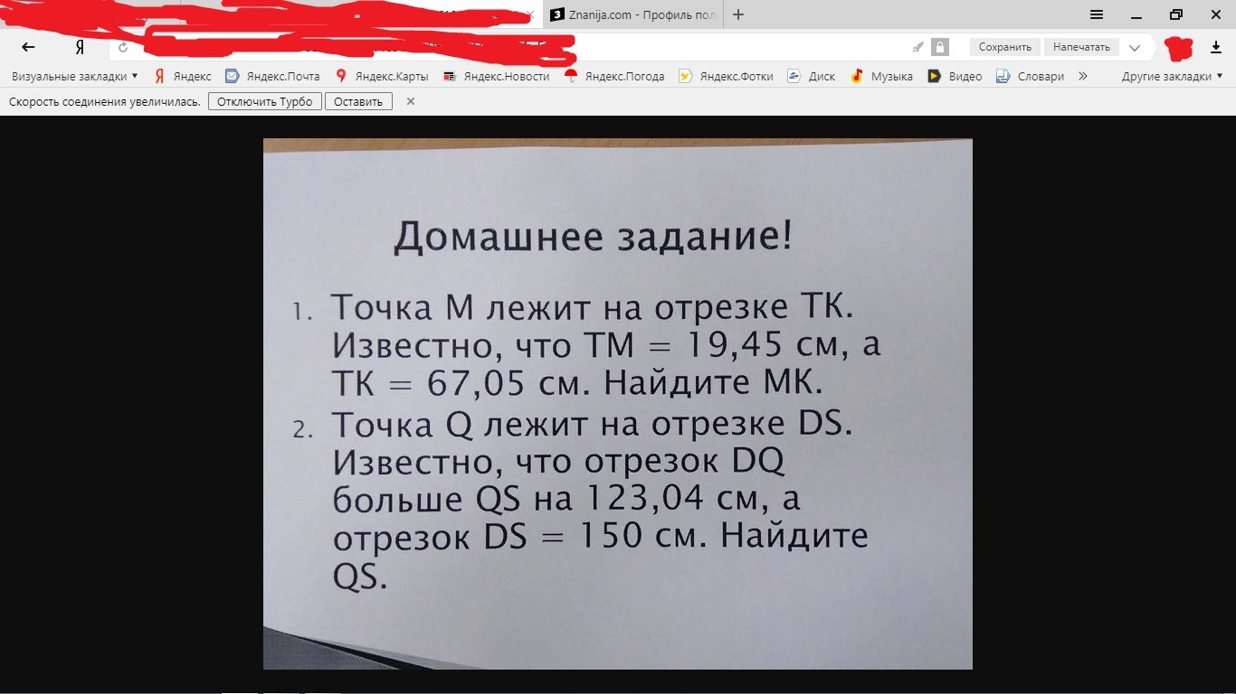 1) МК = ТК - ТМ МК = 67,05 - 19,45 = 47,6 (см)Ответ : МК = 47,6 см