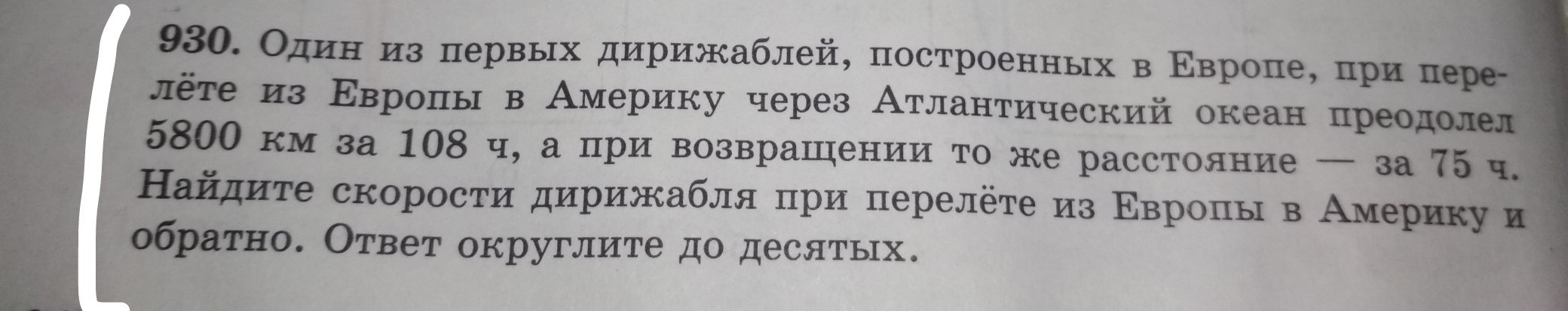 ответ: скорость из Европы в Америку = 53,7 км/ч, обратно = 77,3 км/ч.