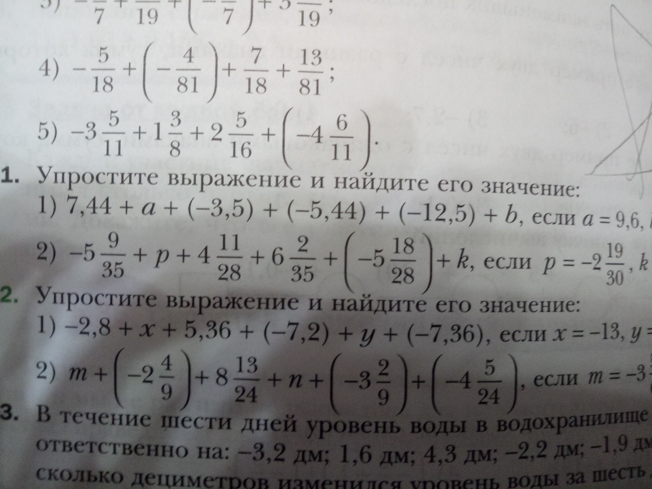 Сгруппировать все числовые слагаемые, привести их к общему знаменателю: м + (-22/9)+205/24+н+(-29/9)+(-101/24)=м + н + 104/24 - 51/9= м+н+13/3-17/3=м+н-4/3.