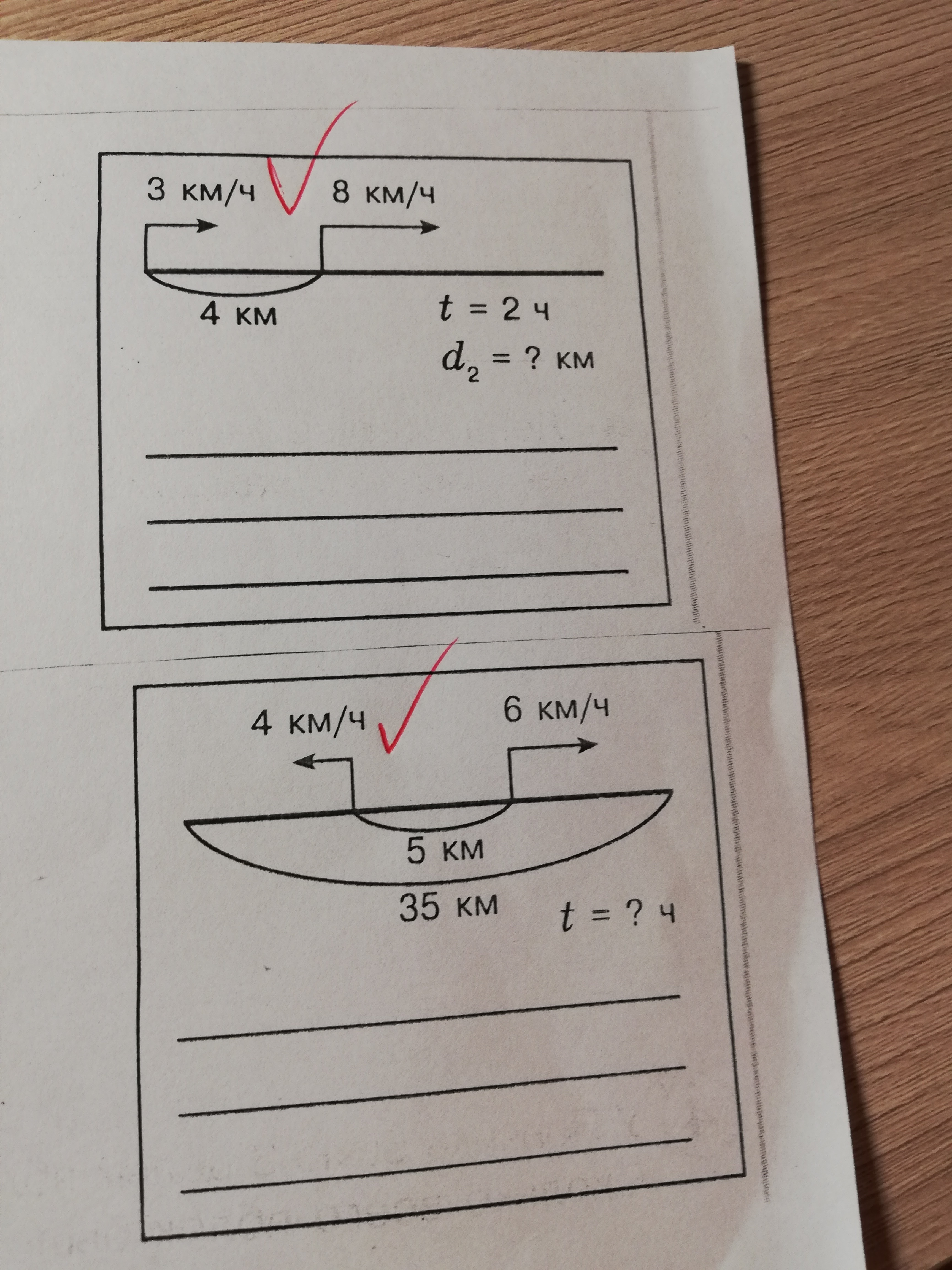 По первому не понял, что требуется найти, из-за этого ответ может быть неверен. Если нужен разрыв, то 14 км, если нужно, сколько второй прошёл, то 2*8=16 км (но тогда непонятно, зачем нужен изначальный разрыв в 4 км и скорость первого в 3 км/ч, лишние данные получаются).
