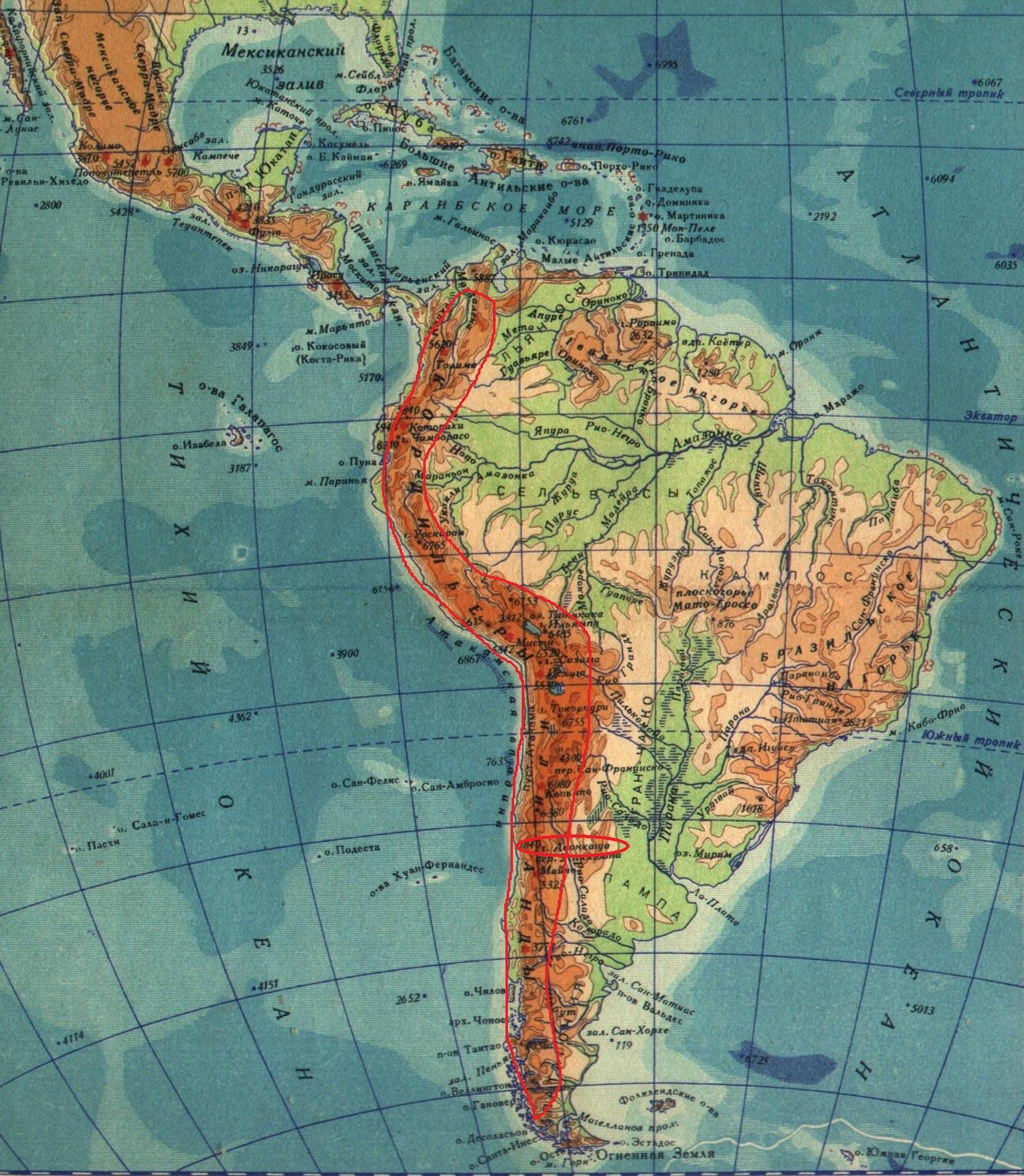 Самая длинная горная система Земли, протянувшаяся с севера на юг вдоль всего тихоокеанского побережья Южной Америки. Её самая высокая вершина - гора Аконкагуа.
