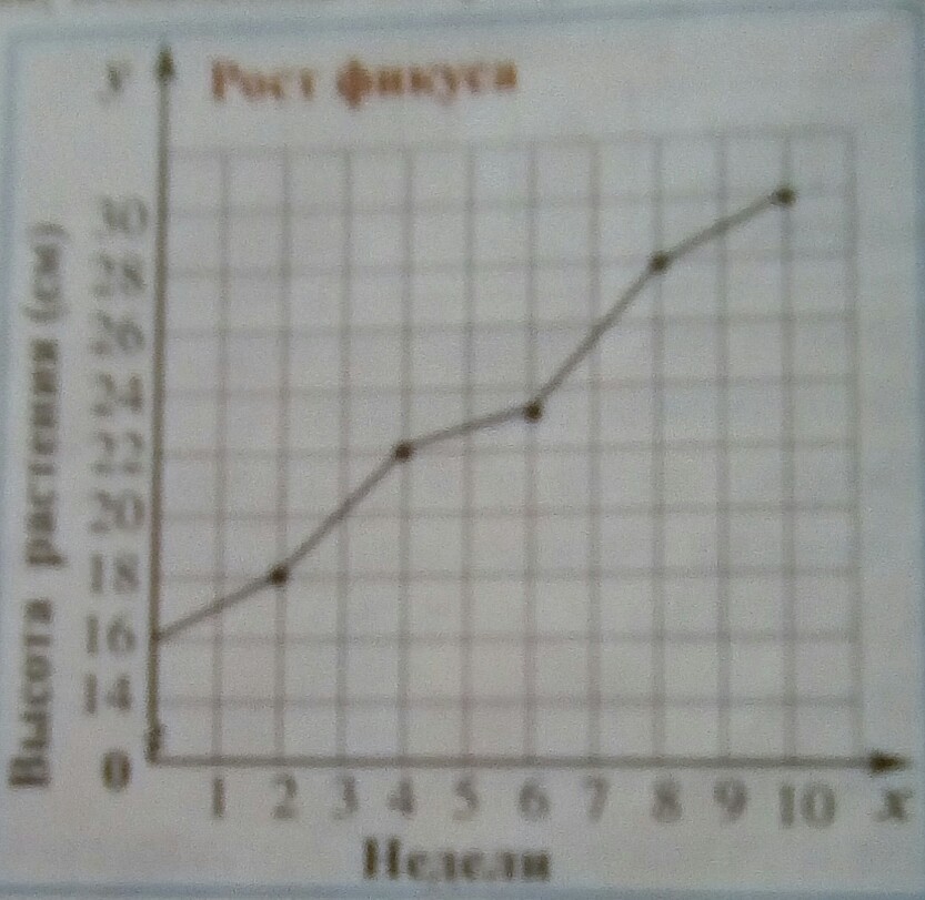 Аиша купила фикус.Она несколько недель наблюдала за ростом растения и построила график,показанный на рисунке.