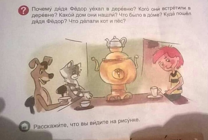 В деревне они встретили почтальона печкина.