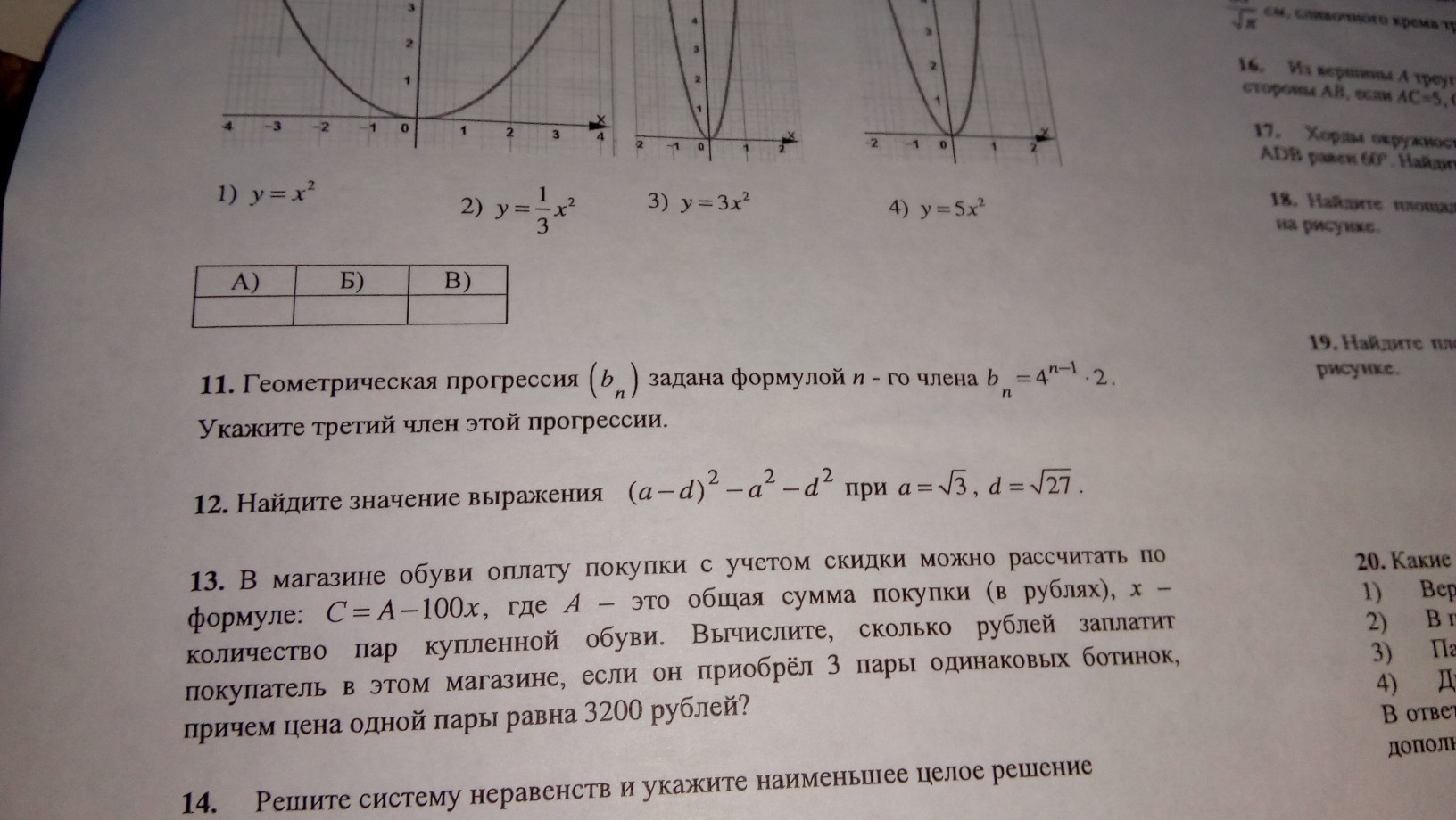 12. (a-d)²-a²-d²=a²-2ad+d²-a²-d²=-2ad=-2*√3*√27=-2*√(3*27)=-2* √(3*3*9)=-2*3*3=-18