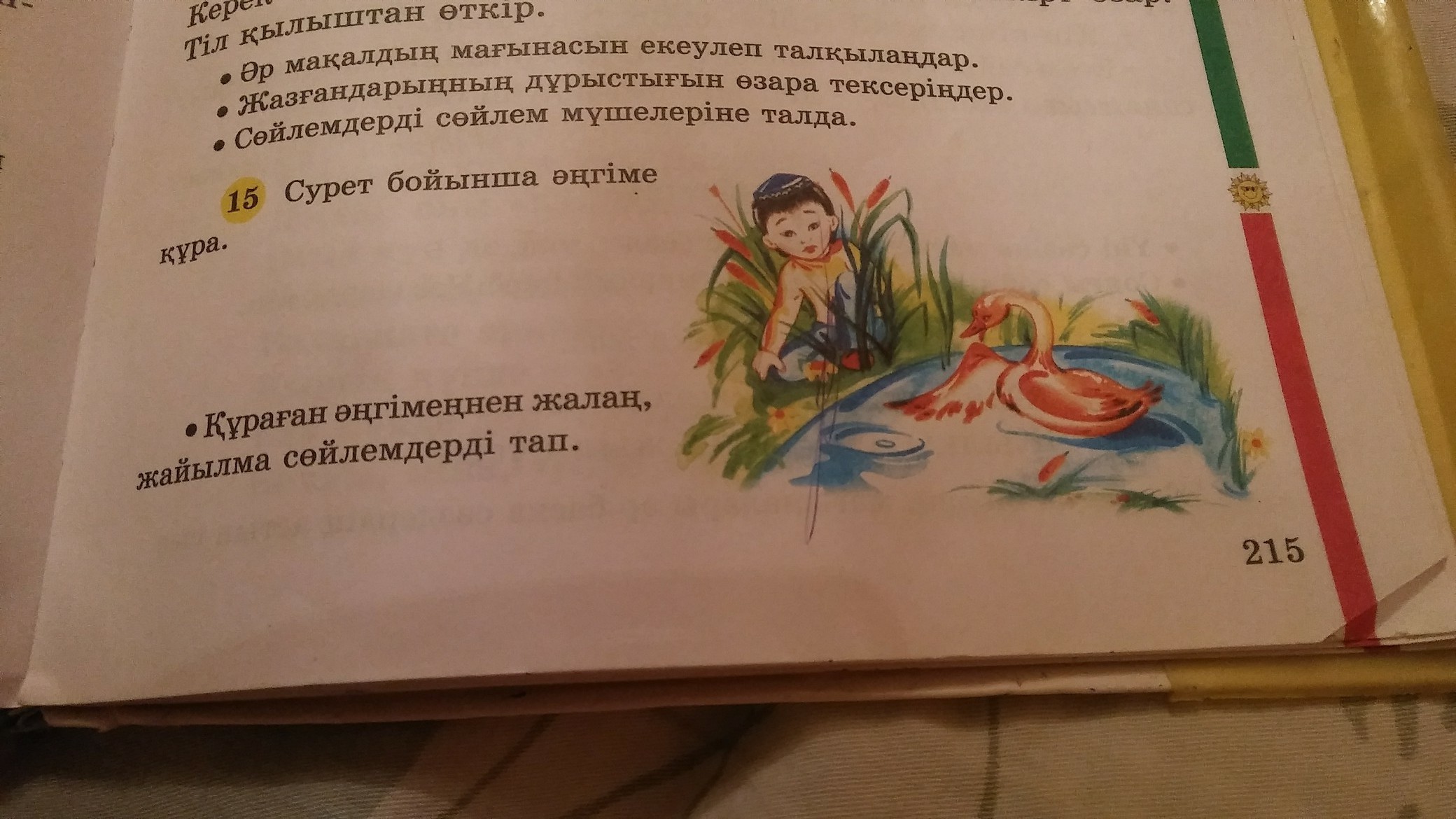 бұл суретте бала мен аққу бейнеленген. бала ойнап жүріп аққуды көрді. бала ол бала, ал аққу ол аққу. қанша сөйлескісі келсе де бір бірін түсіну өте қиын. бірақ бала абайсызда тасты лақтырып жіберген еді, сонда да баланы түсініп тұрған аққу тасты алуға болатыны жайлы белгі берді. ол өте әдемі көрініс