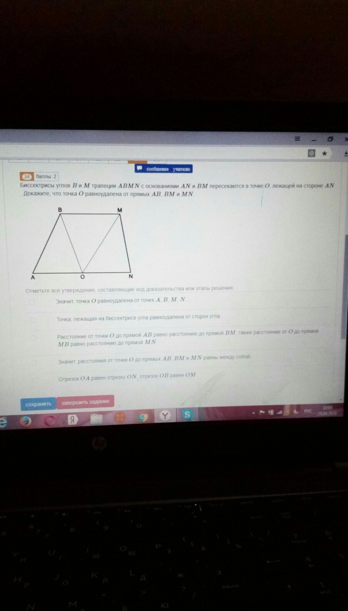 2) точка лежащая на биссекриссе ушла равноудалена от сторон угла