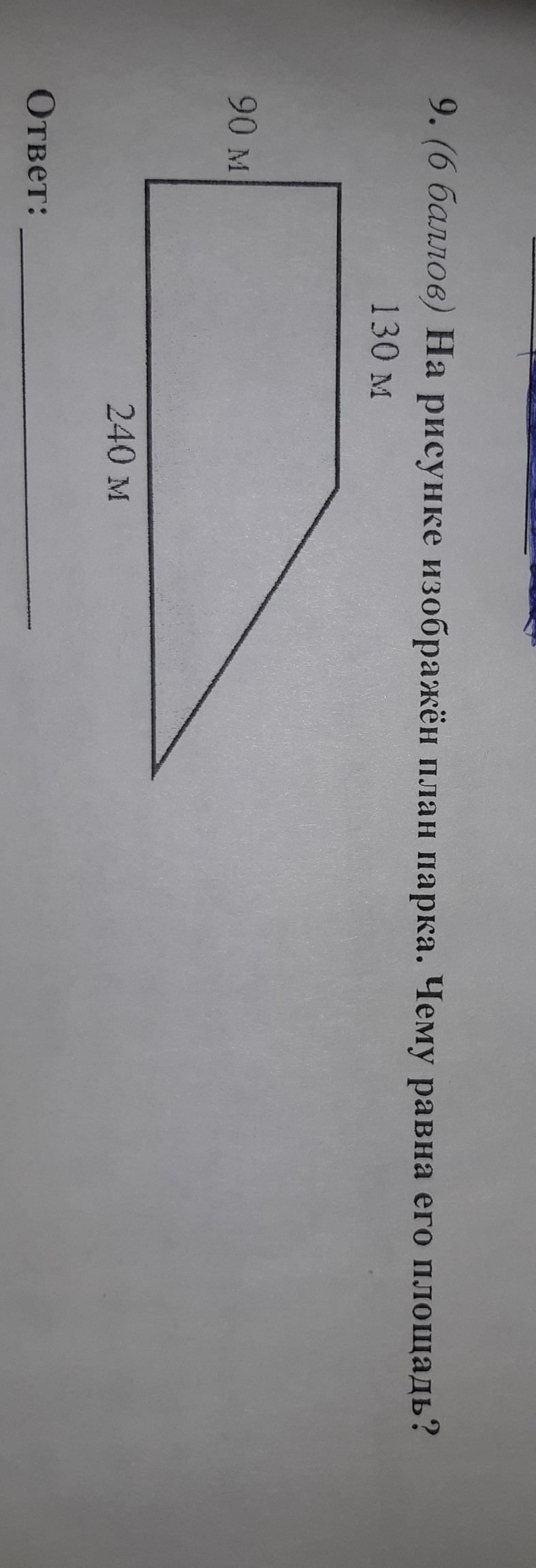 130 метров+90 метров+240 метров=460 метров площадь парка. ответ: площадь парка = 460 метров