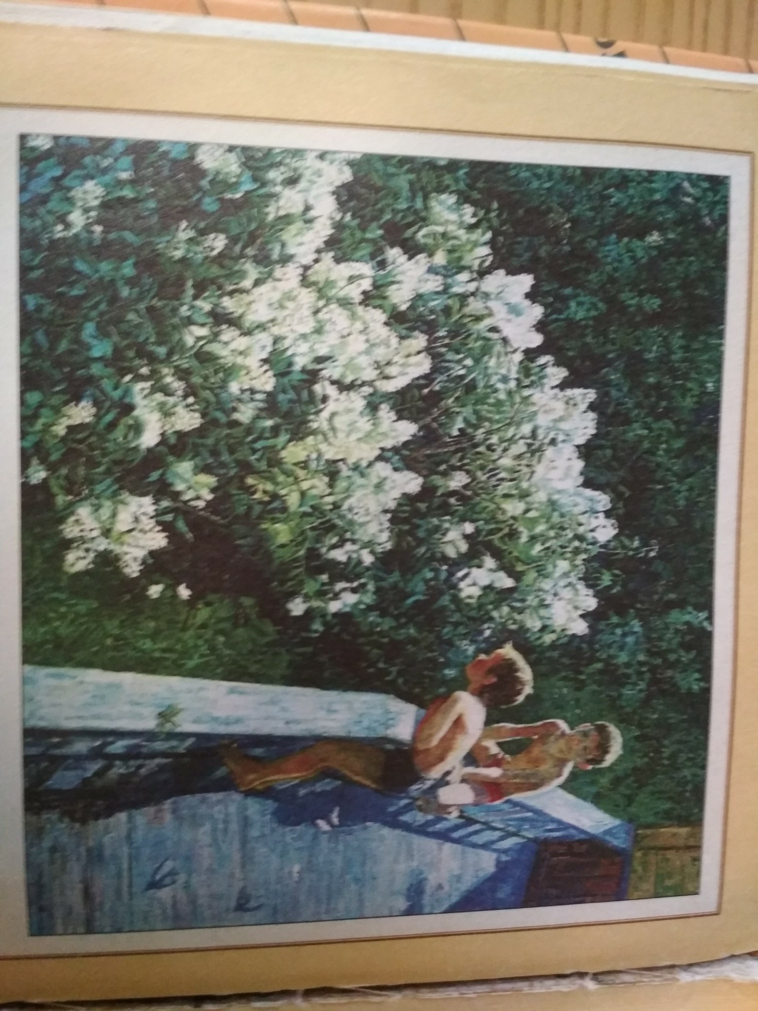 На картине я вижу двух мальчиков, одному, который справа, явно весело, а другому не поймешь, то ли он мечтает, или ему грустно, но по картине можно понять, что ему очень нравится ландышы, такое ощущение, что он хочет до них дотянуться. Они находятся в деревне, в ещё эти мальчики явно братья, но похоже. Рядом весело летит стрекоза. Мальчики одеты в плавках, хотят наверно пойти искупаться на речку, или они уже купались, А еще я вижу коробки, интересно, что там? Картина интересная, с чувством и не понятным настроением, мне она очень нравится!