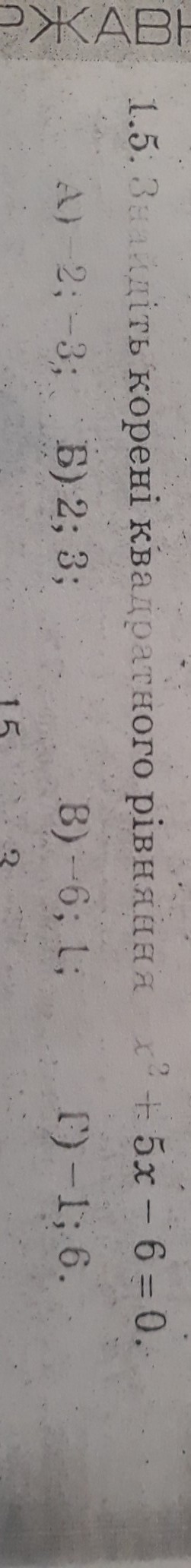 в) -6; 1 так как если подставить их в уравнение, то оно будет равно 0