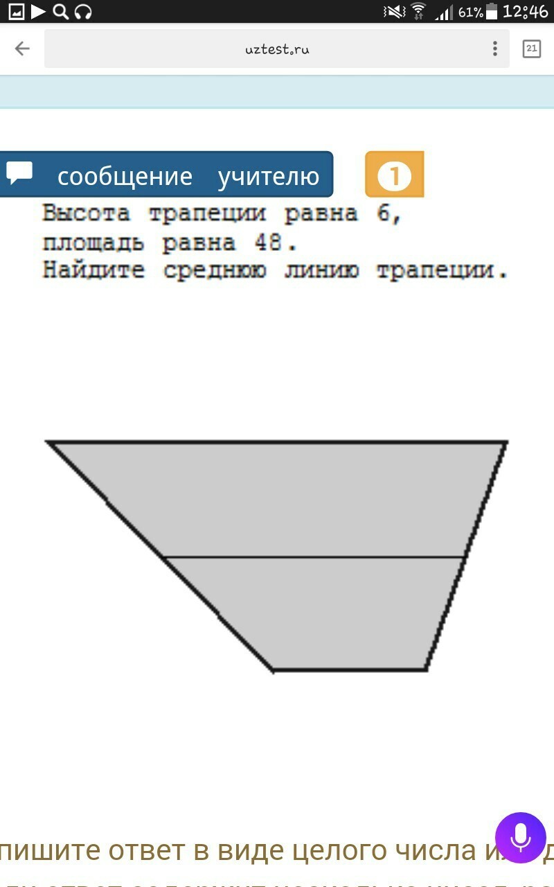 площадь трапеции=mh, где m-средняя линия, тогда m=площадь трапеции÷h, m=48÷6, m=8см.