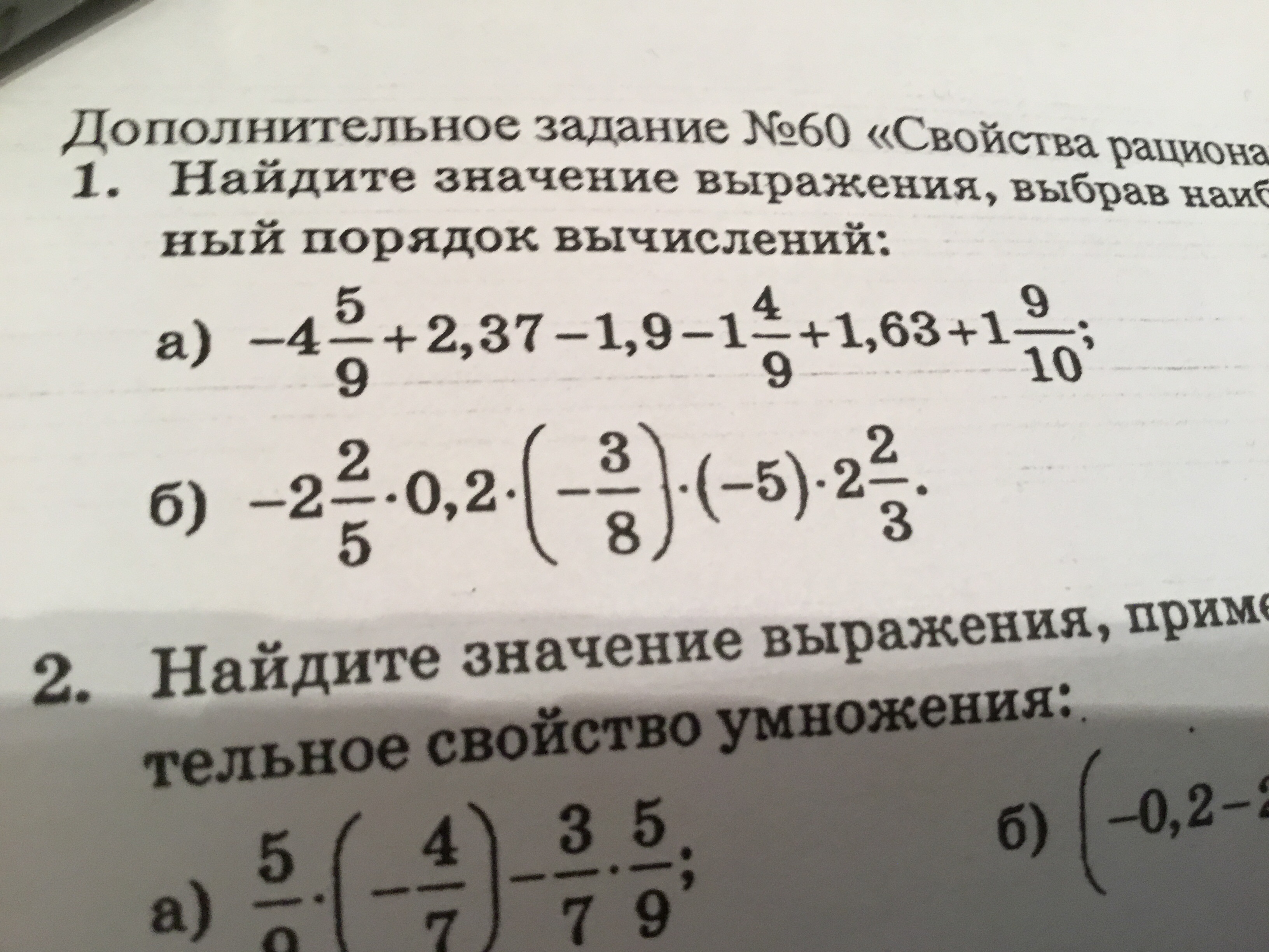 1) -4 5/9 + 2,37 - 1,9 - 1 4/9 + 1,63 + 1 9/10 = {сложим попарно 1 и 4, 2 и 5 и 3 и 6 слагаемые} = -6 + 4 + 0 = -2