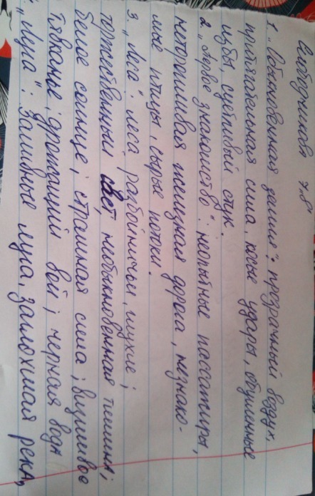 Выпишите из каждой части "Мещёрской стороны" словосочетания(сущ.+прил.) с единственным, наиболее точным эпитетом. Попробуйте объяснить, почему автор выбрал именно это слово.
