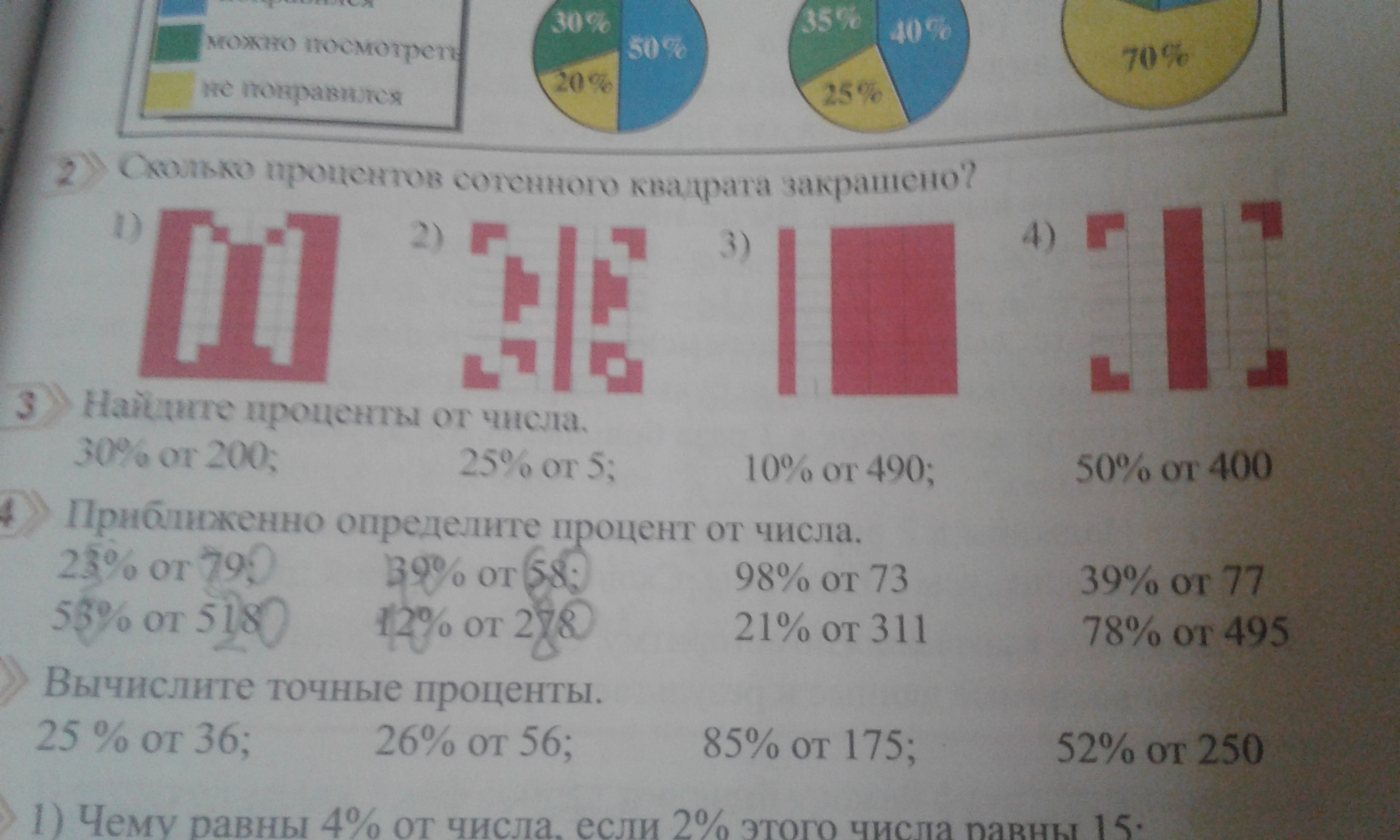 3) Не закрашено: 2*10=20 => закрашено 100-20=80%.