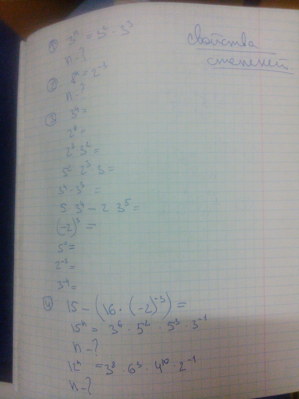 Когда идет умножение с одинаковыми множителями, то степени складываются. При деление с одинаковыми множителями, степени вычитаются между собой. Если степени одинаковые, то множители можно умножить друг на друга. Любое число в нулевой степени равно единицы. Отрицательное число только в нечётной степени даёт отрицательно число, если же степень чётная, то отрицательное число становится положительным.