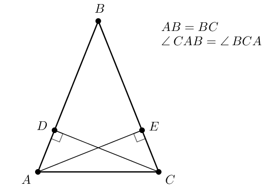 Рассмотрим прямоугольные треугольники ADC и AEC. У них общая сторона AC, а углы ∠СAB и ∠BCA равны как углы при основании равнобедренного треугольника. Следовательно, треугольники равны по гипотенузе и острому углу, а значит, равны их соответствующие катеты: AE=DC.