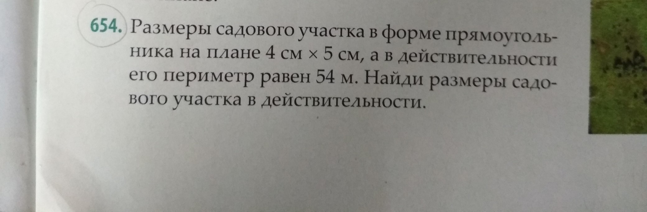 1. Периметр участка на плане = 2(4+5) = 18 (см)