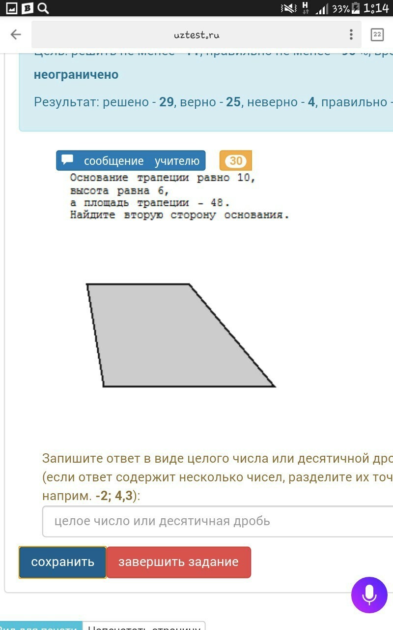 S = (a+b)/2 * h (Где a и b - основания трапеции, h - высота)