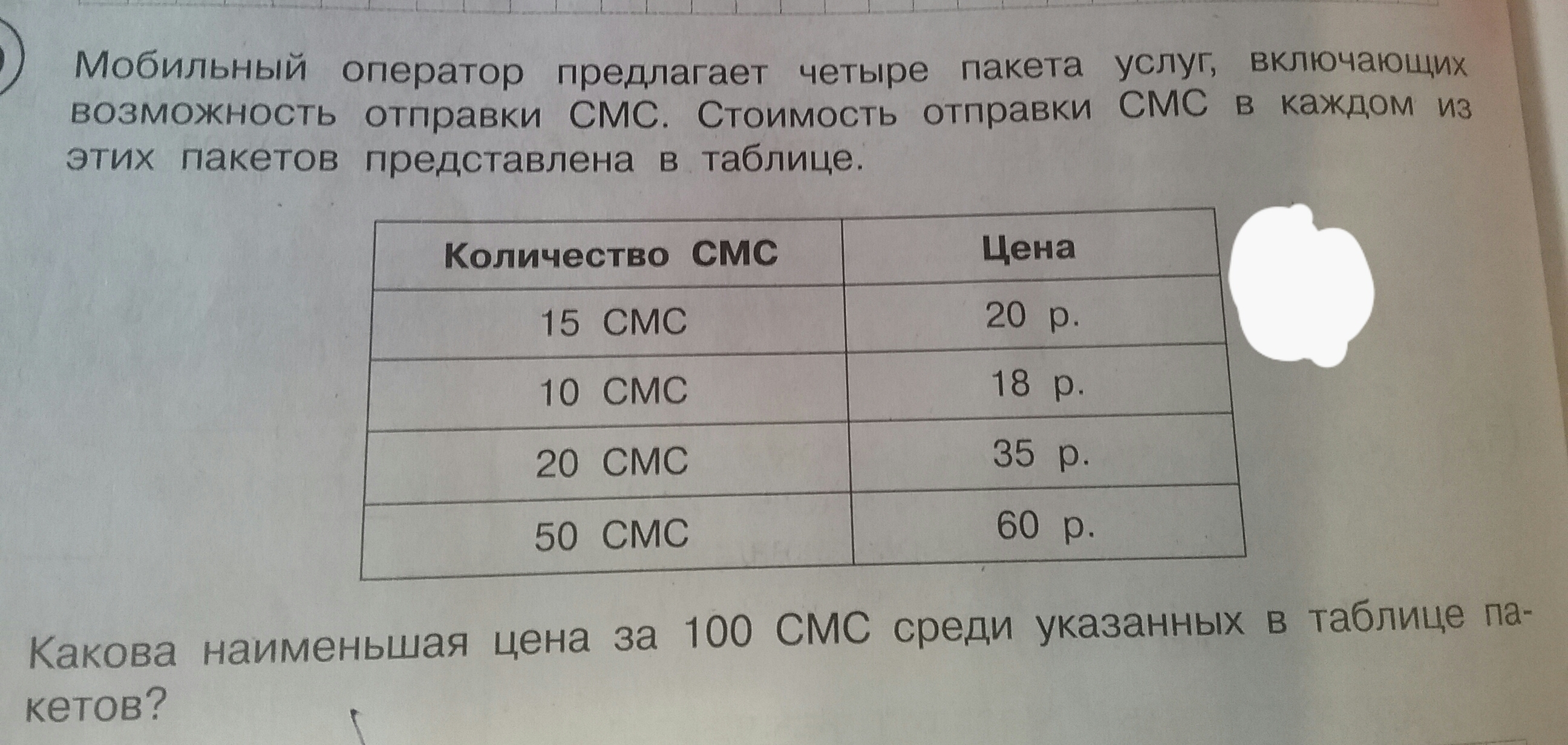 2) 18/10*100 = 1,8 * 100 = 180 рублей - цена за 100 смс во втором пакете