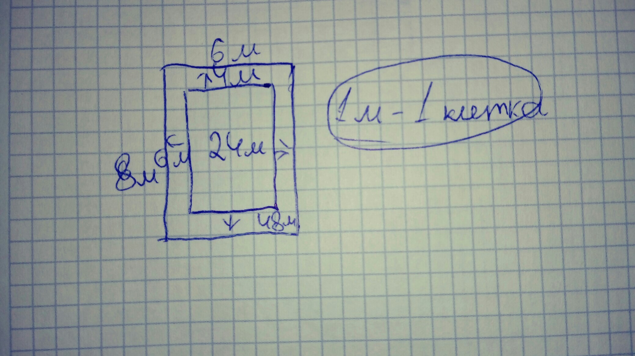 рисуем прямоугольник, если его забор(стороны) увеличить на 1 метр то получаются стороны 6м и 8 м