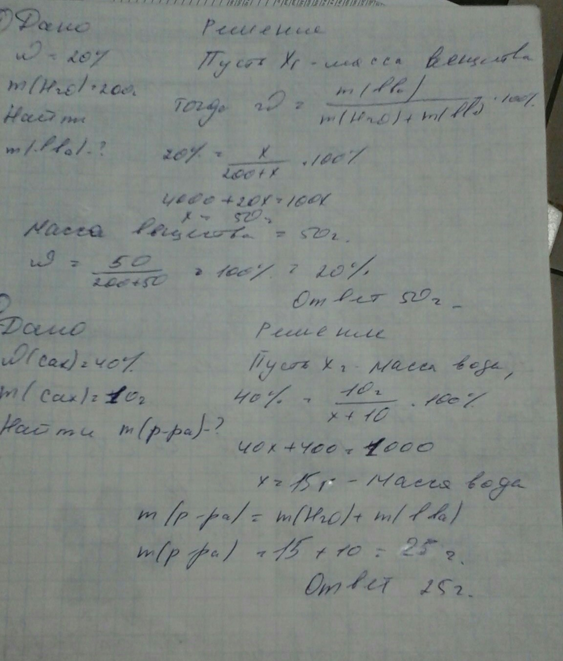 Виготовте розчин з масовою часткою 20% в якому міститься 200г води( Задача с X)