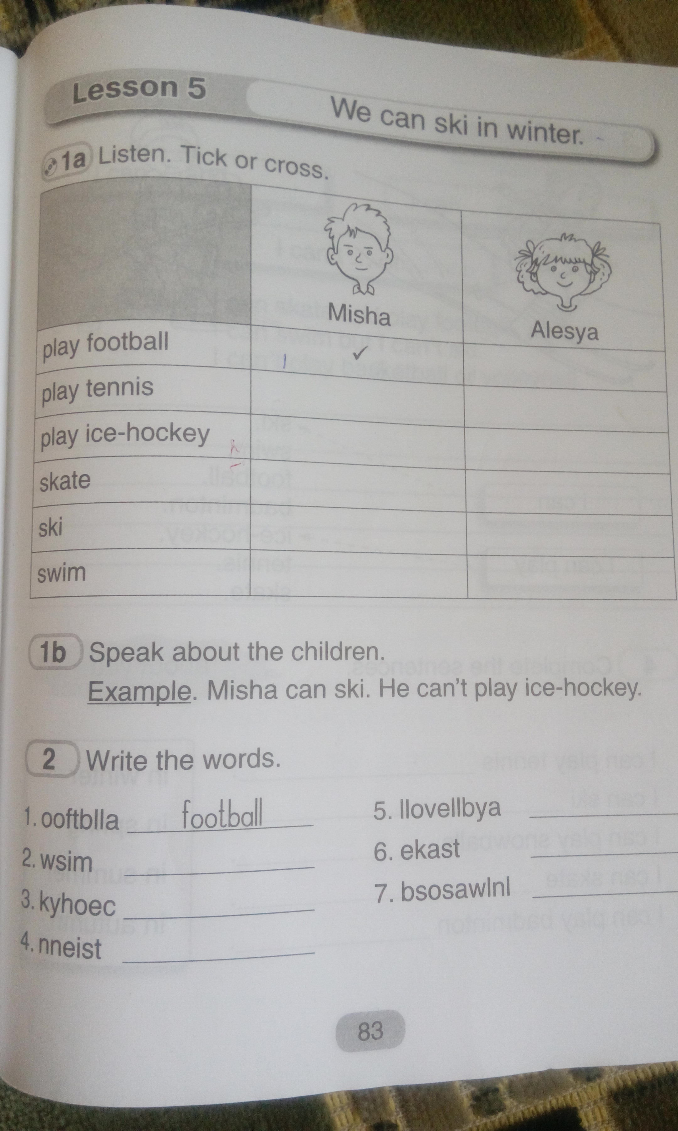 Первое задание надо прослушать. Поэтому нерешаемое. Второе-swim , hockey ,tennis , volleyball, skate ,snowballs