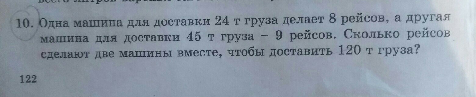 120/8=15 (рейсов) сделают они оба чтобы доставить 120 т груза