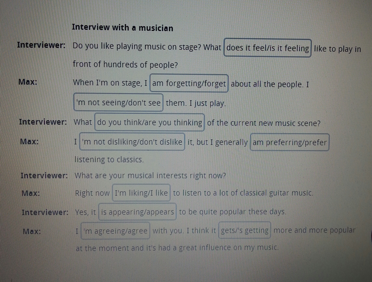 В 1 рис. все глаголы в Present Simple, кроме последнего, там будет инговое окончание.