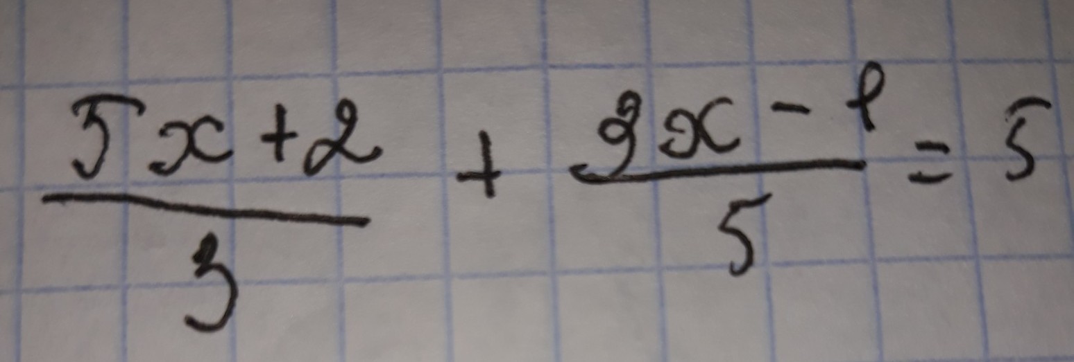 помогите пожалуйста решить уравнение 5х+2/3+3x-1/5=5