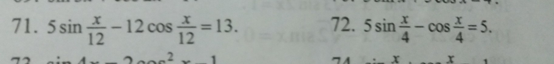 5Sinx/4 - Cosx/4 = 5 ( есть формулы: Sinx = 2tgx/2/(1 + tg²x/2)