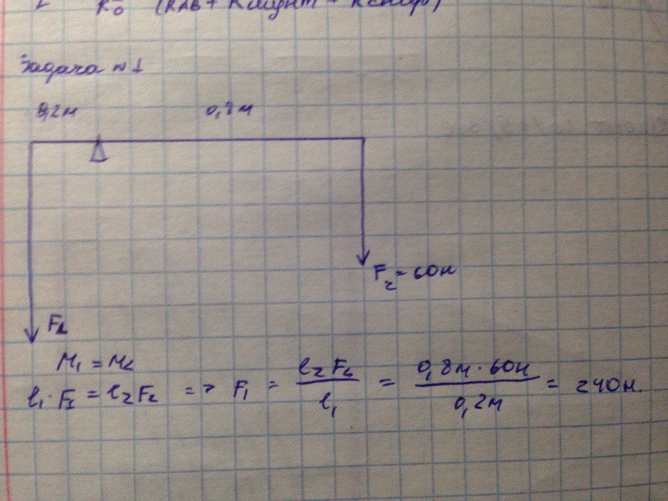 плечи рычага равны 0,2 и 0,8 м.Какой груз принимает рычаг,если к большему плечу приложена сила равная 60Н