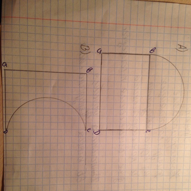 1) Площадь прямоугольника равна 5,5 см*4 см = 22 см² Из неё нужно вычесть площадь половині круга. Площадь всего круга S=πd²/4 = 3.14*5.5²/4 = 23.746 см² , половина круга соответственно будет 23,746/2 = 11,87 см²