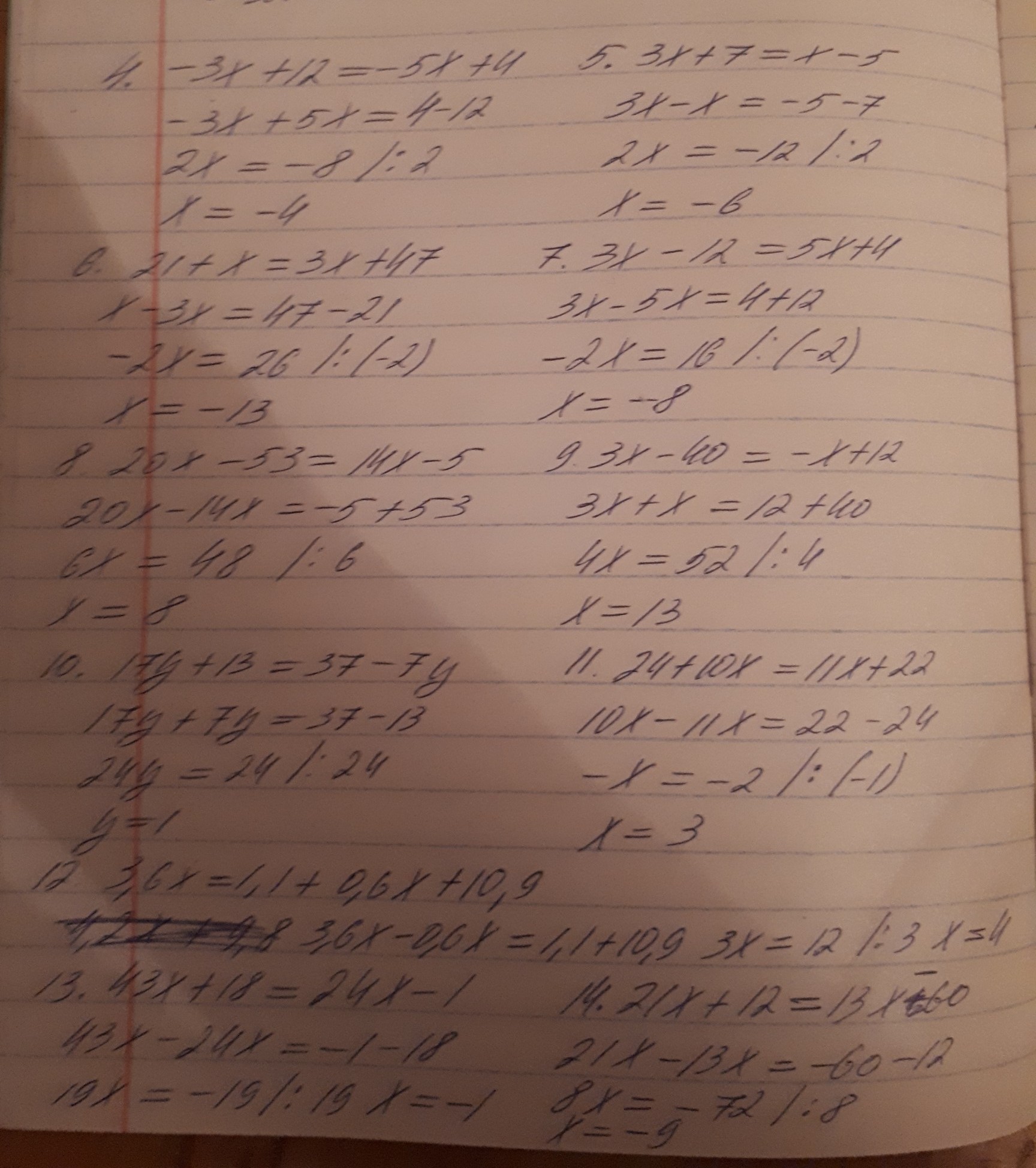 12. 3,6x-1,1+0,6x+10,9