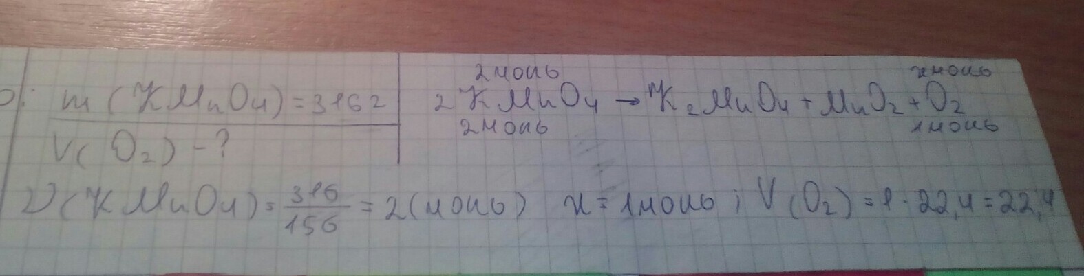 Сколько литров (при н.у.) газа кислорода можно получить в результате полного разложения 316 г перманганата калия? Ar(K)=39, Ar(Mn)=55, Ar(O)=16, Mr(KMnO4)=158