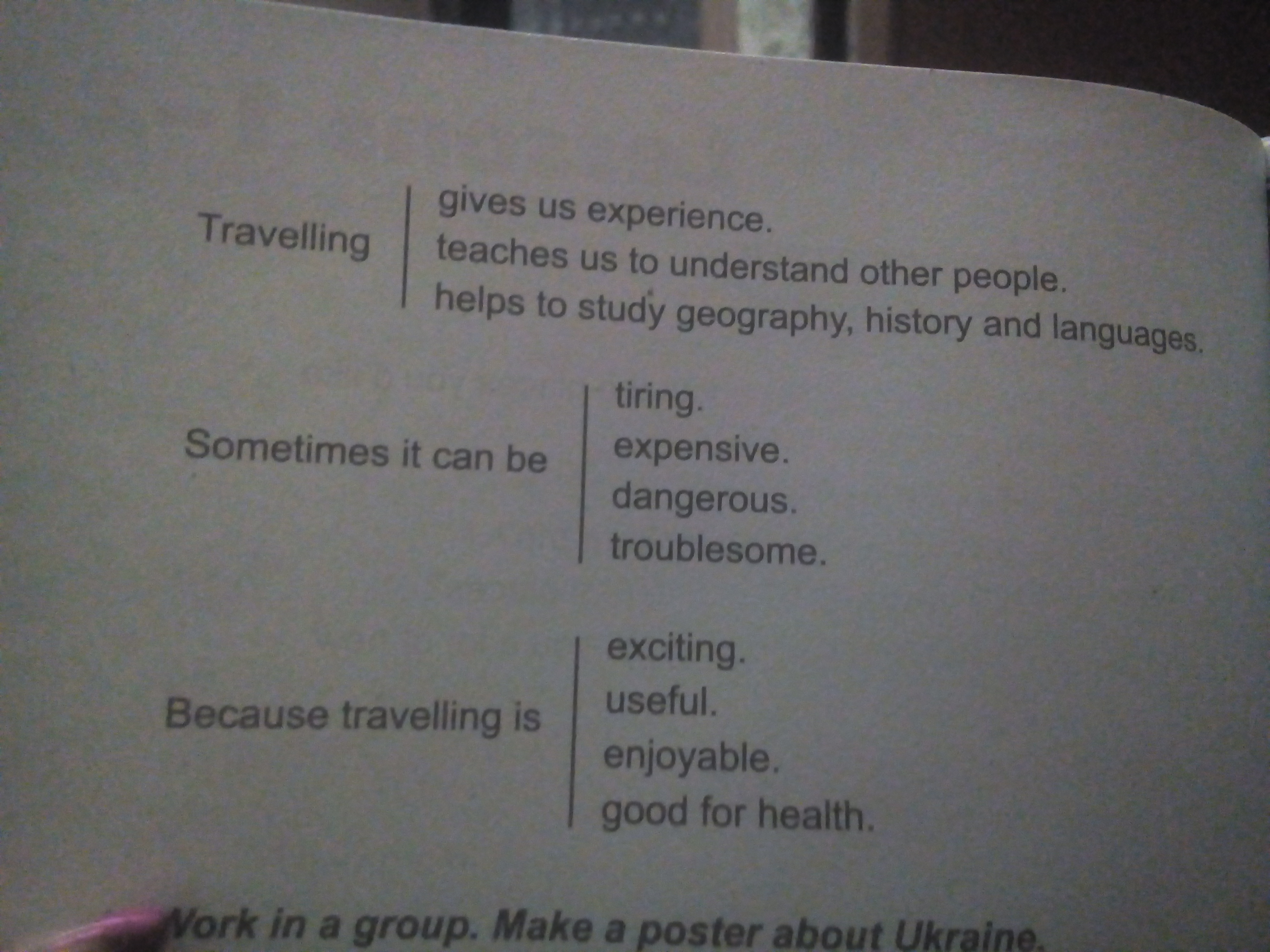 People like to travel with friends. When they travel they like to be alone. Usually they travel to see the beauty of the world. Traveling helps to study geography, history and languages. Sometimes it can be dangerous. Traveling can be exciting.