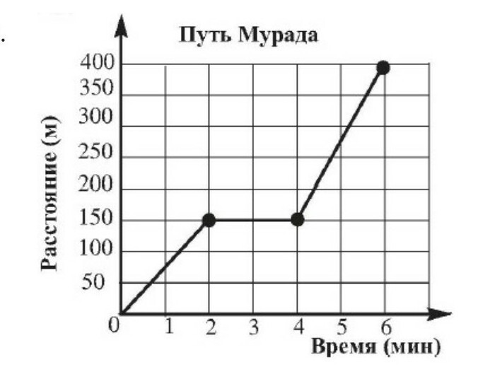 c) Мурад 2 минуты отдыхал, 2 минуты шел, 2 минуты бежал.